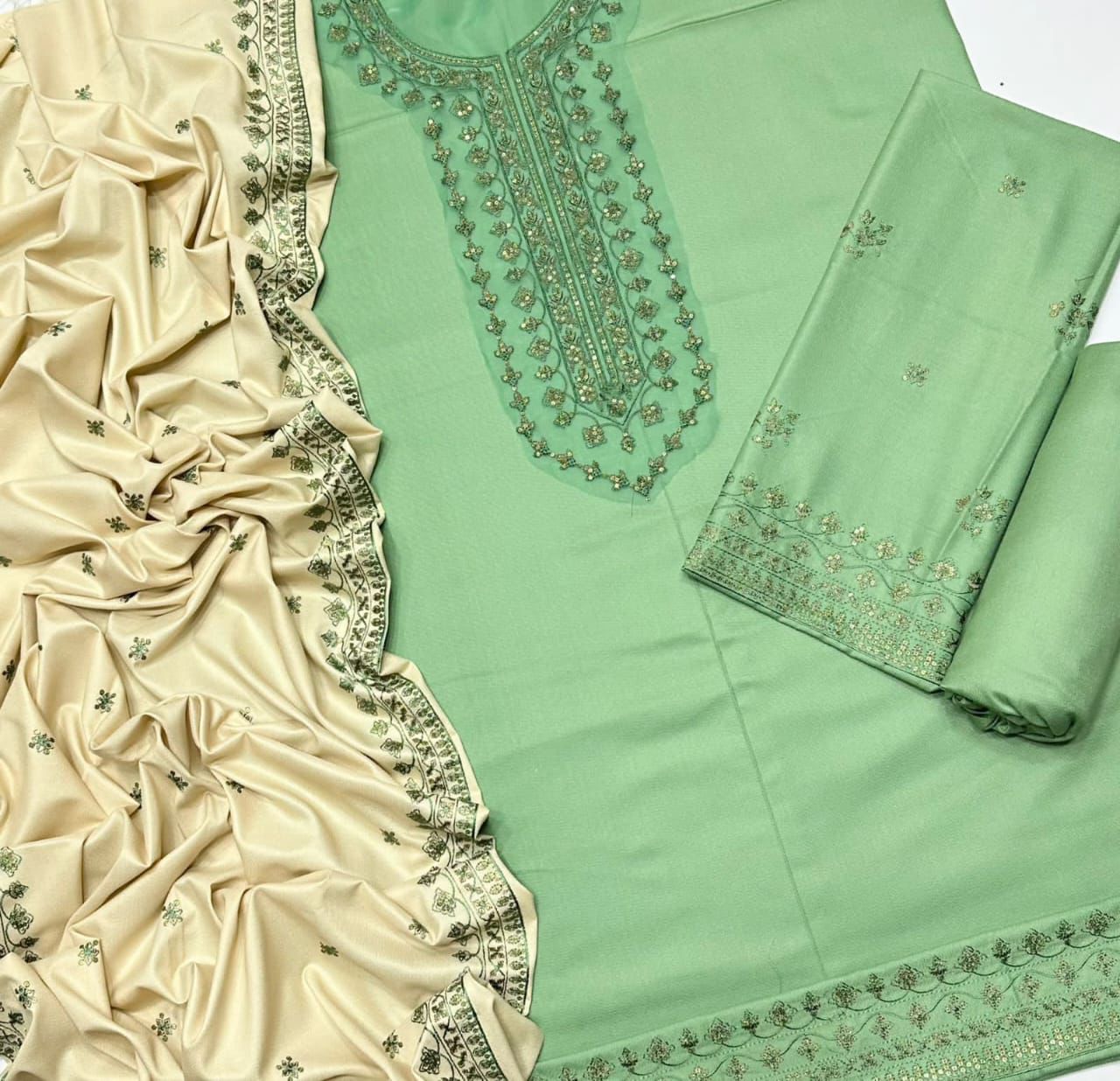 ✔️ Neck: Elegant sequence embroidered neckline with matching bottom embroidered patch
