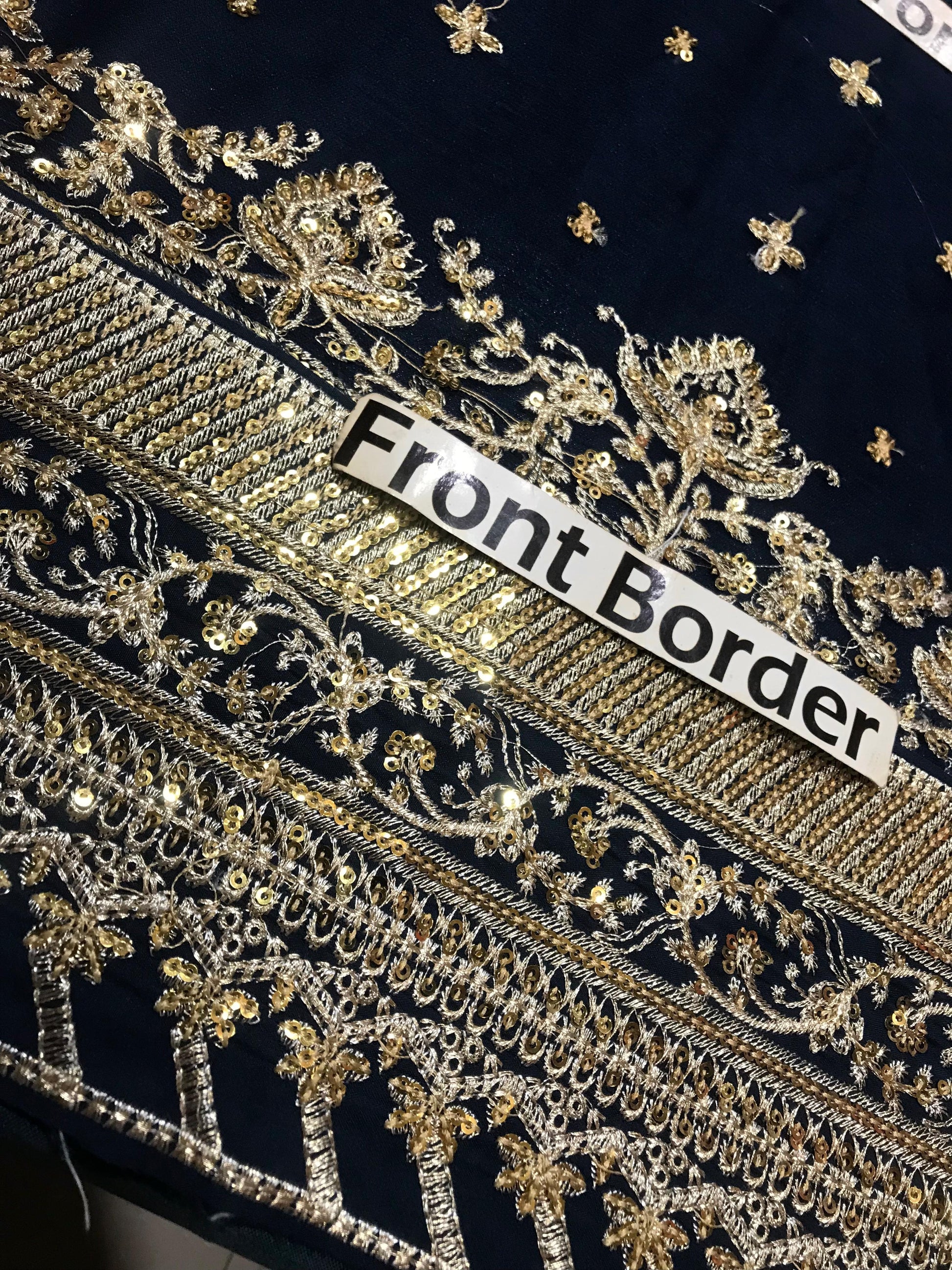 Dupatta: Chiffon embroidered dupatta with four-sided heavy embroidered border and appliqué finish ready to wear