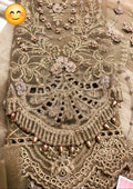The front panel steals the spotlight with heavy embroidery, stone work, and 3D floral appliqués, giving a luxurious, couture-inspired look. The cutwork detailing adds sophistication, while the daman is beautifully finished with intricate embroidery and delicate hand embellishments.