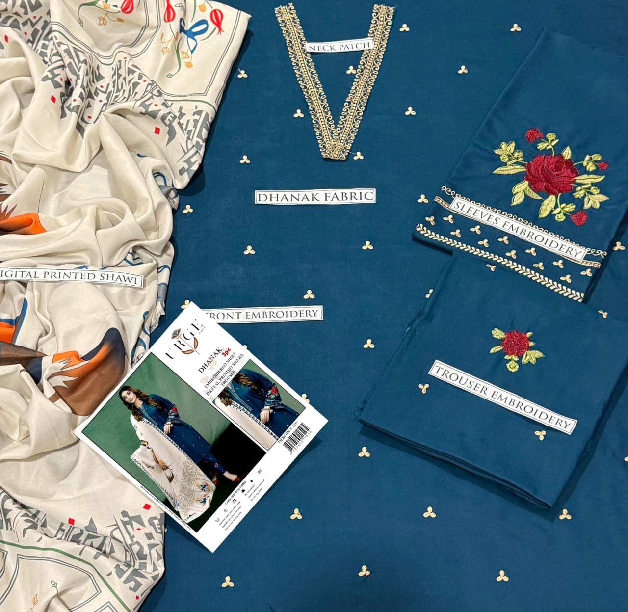 URGE Dhanak 3PC Embroidered Suit ( Article 14)